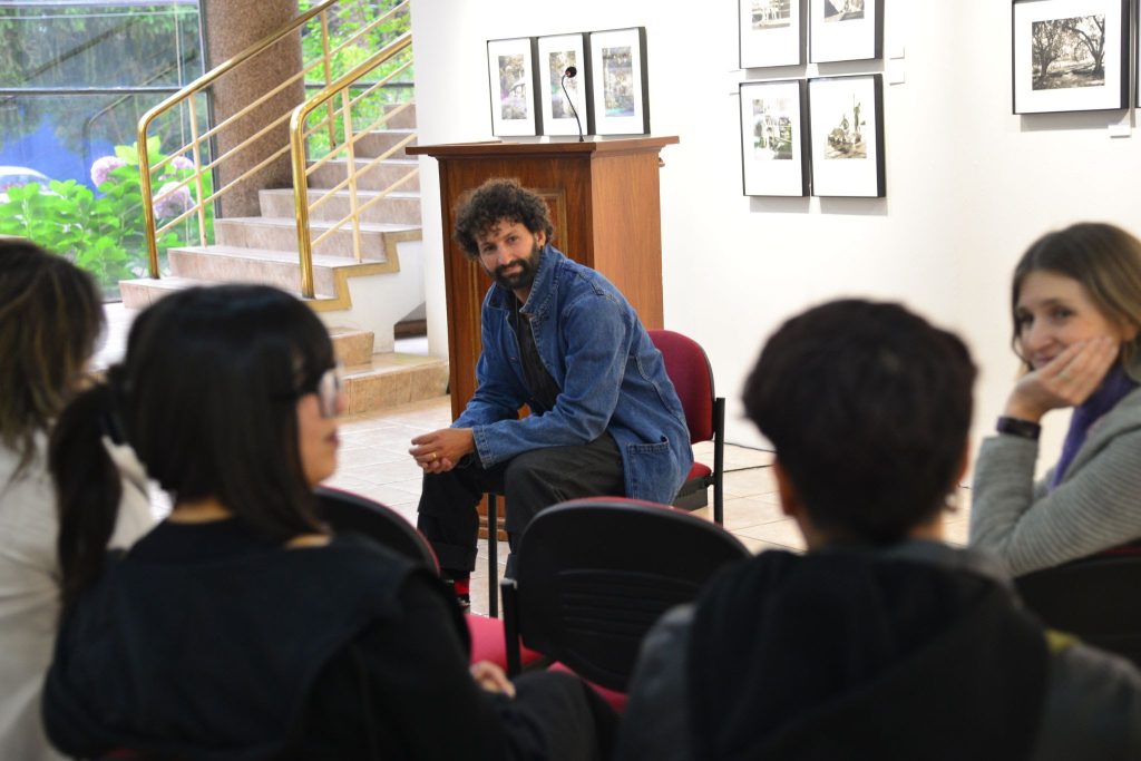 Y en el marco de esta exposición, la Dirección de Extensión Cultural-Artística de la casa de estudios ha organizado un conversatorio con el fotógrafo, programado para el próximo martes 9 de abril, a las 18:00 horas, en la citada sala, para compartir con la comunidad talquina su experiencia como artista, sus técnicas de revelado artesanal para la fotografía análoga y conocer de cerca su trabajo, donde las imágenes son su testimonio.