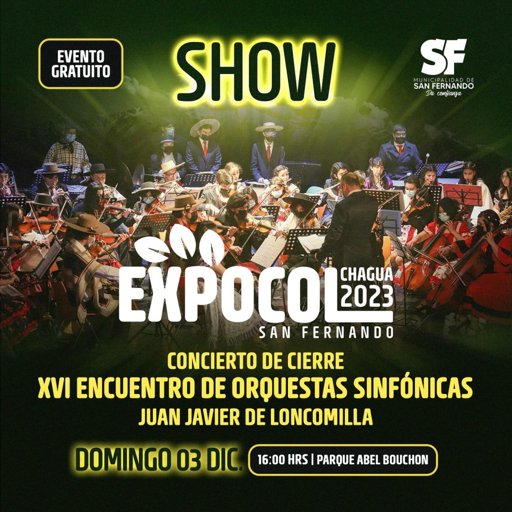 El jefe comunal hizo presente que, en paralelo, se desarrollará el decimosexto Encuentro de Orquestas Sinfónicas, donde nos visitarán músicos de distintas ciudades del país, instancia que comenzará el día 1 de diciembre con un concierto en la parroquia San Fernando Rey y finalizará con una gran presentación en la clausura de Expocol el domingo 3 de diciembre.