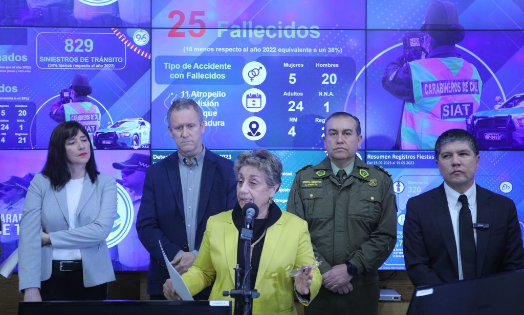 La ministra López dio a conocer el balance acompañada por el ministro del Interior (s), Manuel Monsalve; el Director Nacional de Orden y Seguridad, General Inspector Enrique Monrás, junto a la Jefe de Zona Tránsito, Carreteras y Seguridad Vial, General Marcela González; el ministro de Transportes y Telecomunicaciones, Juan Carlos Muñoz; y la directora de Senda, Natalia Riffo.