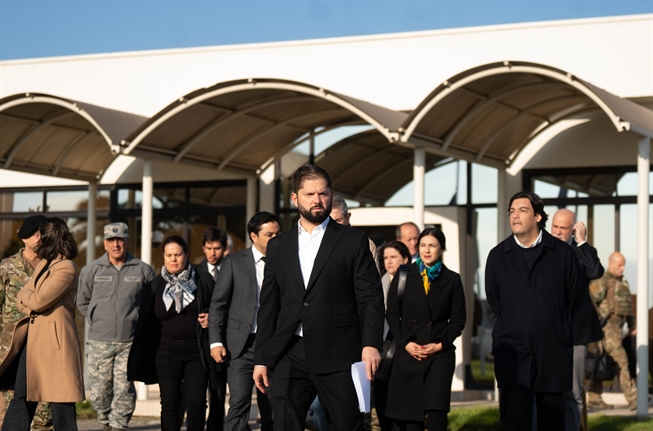 Pueden ver que hoy me acompañan representantes de todos los Poderes del Estado, el presidente de la Corte Suprema, los presidentes de ambas Cámaras, el senador García y la diputada Cariola, el fiscal nacional, el director general de la PDI, los comandantes en jefe de las tres ramas de las Fuerzas Armadas, ministros del Comité Político y la ministra de Defensa, parlamentarios de la Cámara de Diputados y del Senado de las Comisiones de Seguridad y de Defensa de ambas ramas.