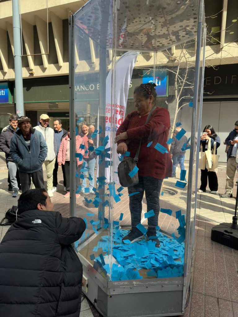 El programa Vacaciones Tercera Edad de Sernatur se unió a las celebraciones de Fiestas Patrias con la instalación del recordado “Ciclón Millonario”, ahora bautizado como “Ciclón Viajero”, en pleno Paseo Ahumada. En la oportunidad, en vez de billetes, los transeúntes podían concursar por tickets para viajar a Viña del Mar y Pichilemu, con todo incluido, y así extender la celebración de las Fiestas Patrias y del mes del turismo.
