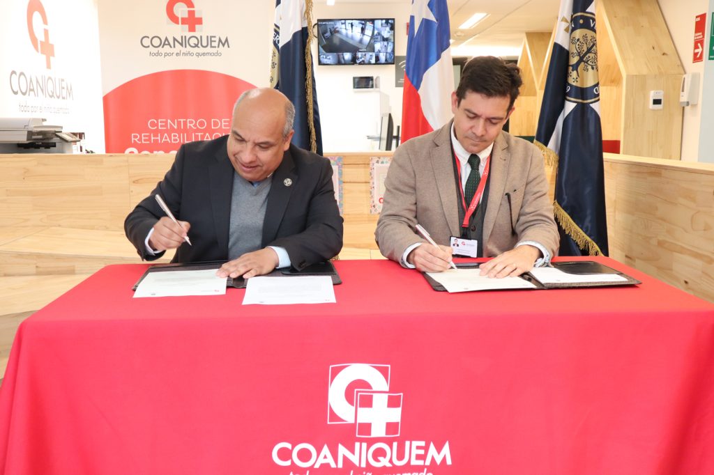 “COANIQUEM es una institución que tiene valores que nuestra universidad comparte plenamente, y es en esos valores donde deseamos poner nuestro énfasis”, estableció Claudio Concha Navalón, vicerrector de la USS Concepción, quien firmó el acuerdo junto a Jorge Rojas Goldsack, presidente ejecutivo de la entidad. “Vamos a aprender del equipo de COANIQUEM, pero también vamos a entregar todo de nosotros para contribuir en mejorar la calidad de vida de niños y familias que sufren, poniéndonos a disposición en lo que la institución requiera”, agregó.