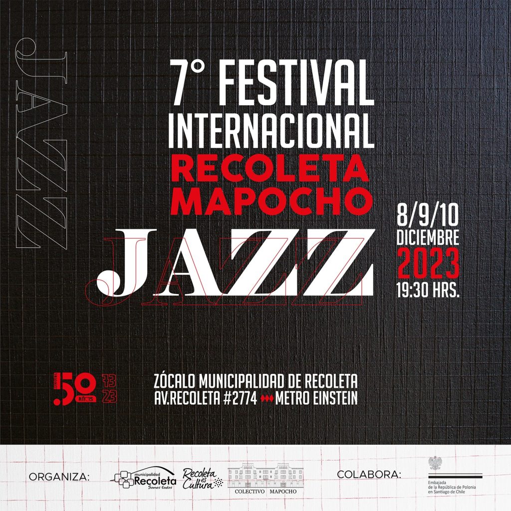 Nuevamente aterrizan en Recoleta las mejores exposiciones del jazz mundial para la séptima edición del Festival Internacional Recoleta Mapocho Jazz, a realizarse los días 8, 9 y 10 de diciembre, en el zócalo municipal de Recoleta (Av. Recoleta #2774).