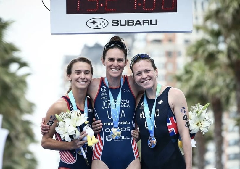 Mientras, la mejor de la serie femenina fue la estadounidense Gwen Jorgensen. La triatleta de 37 años y medallista de oro en los Juegos Olímpicos Río de Janeiro (2016) se impuso en una competencia no exenta de suspenso, esto luego que las dos primeras triatletas en cruzar la meta (la estadounidense Katie Zaferes y la checa Teresa Zimovjanova) fueran descalificadas al realizar un giro equivocado en un tramo del trote que les permitió ahorrar valiosos segundos. Tras el análisis de los jueces técnicos, se otorgó el primer lugar a Jorgensen, siendo secundada por su compatriota Gina Sereno y la británica Vicky Holland.