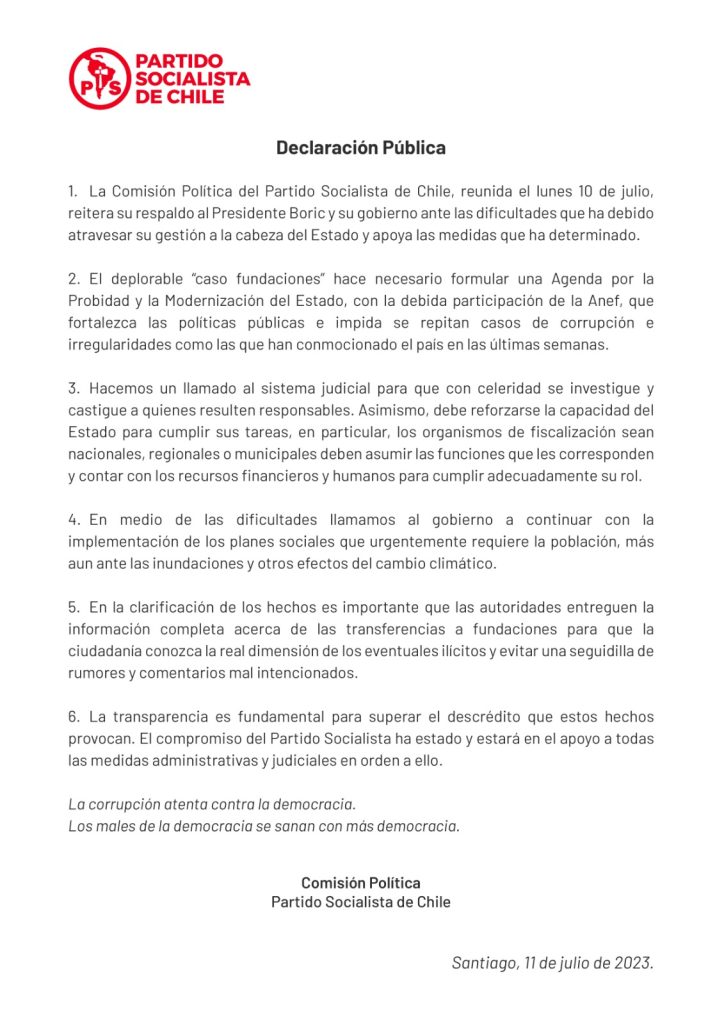 Partido Socialista hace llamado para que se investigue y castigue con celeridad a responsables de «caso fundaciones»
